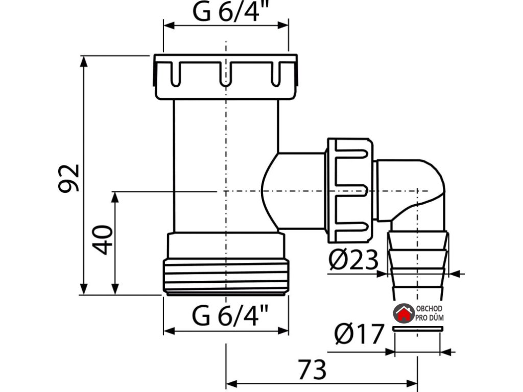 - Závit pro připojení k dřezovému sifonu 6/4"
