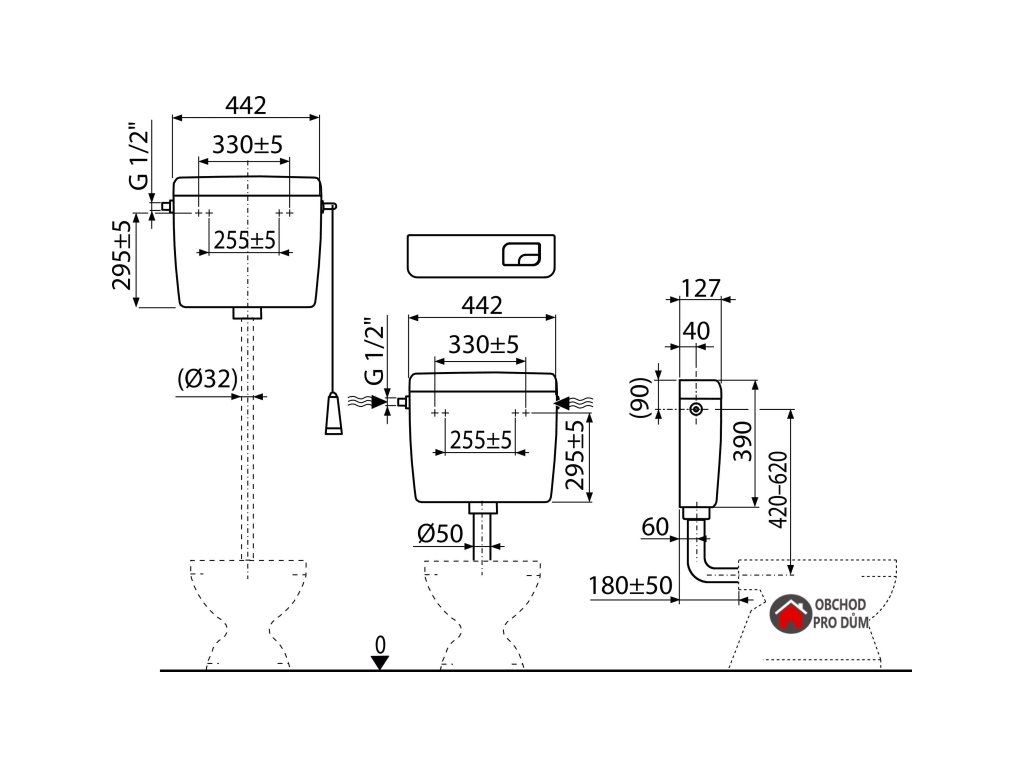 Při instalaci na vysoko položenou nádržku je funkční pouze velké spláchnutí | 6 – 8 l |
