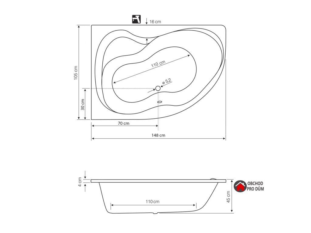 CIDLINA 150 vana 150x105x45cm levá bílá