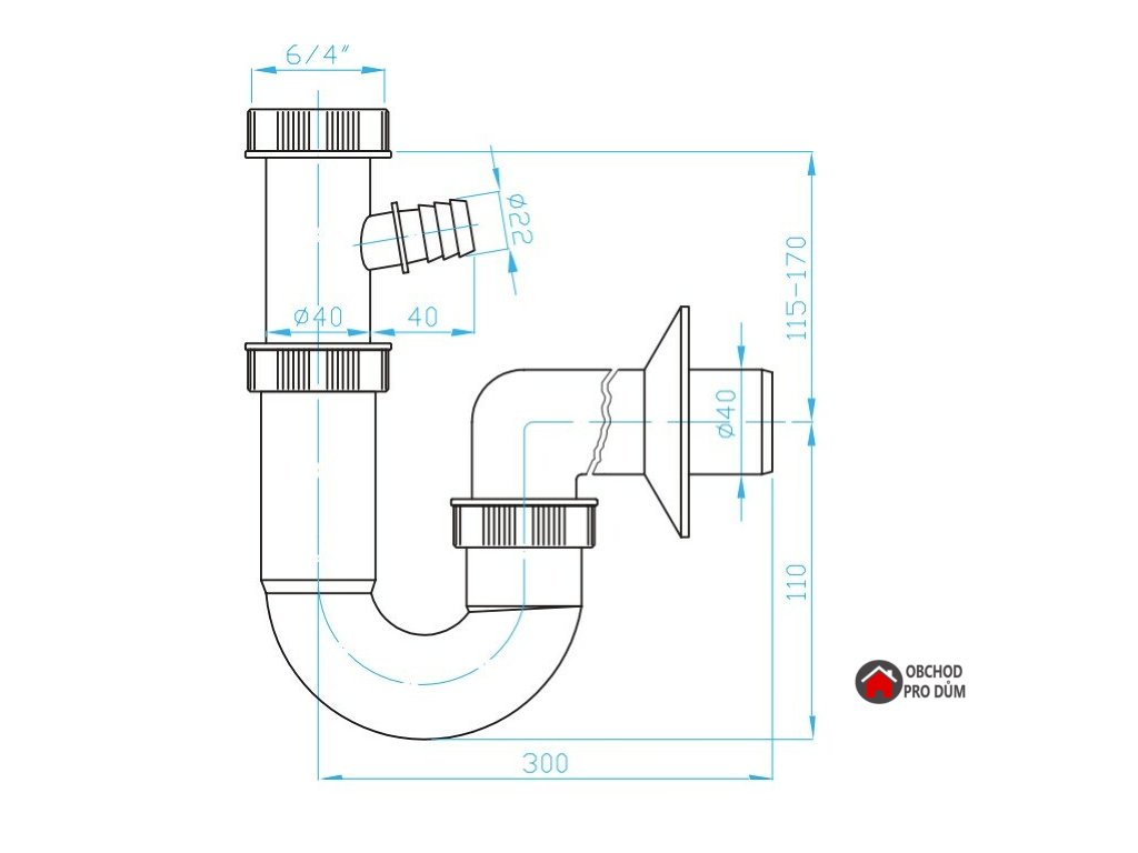 PLAST BRNO EM36440 U sifon 6/4” pračkový vývod