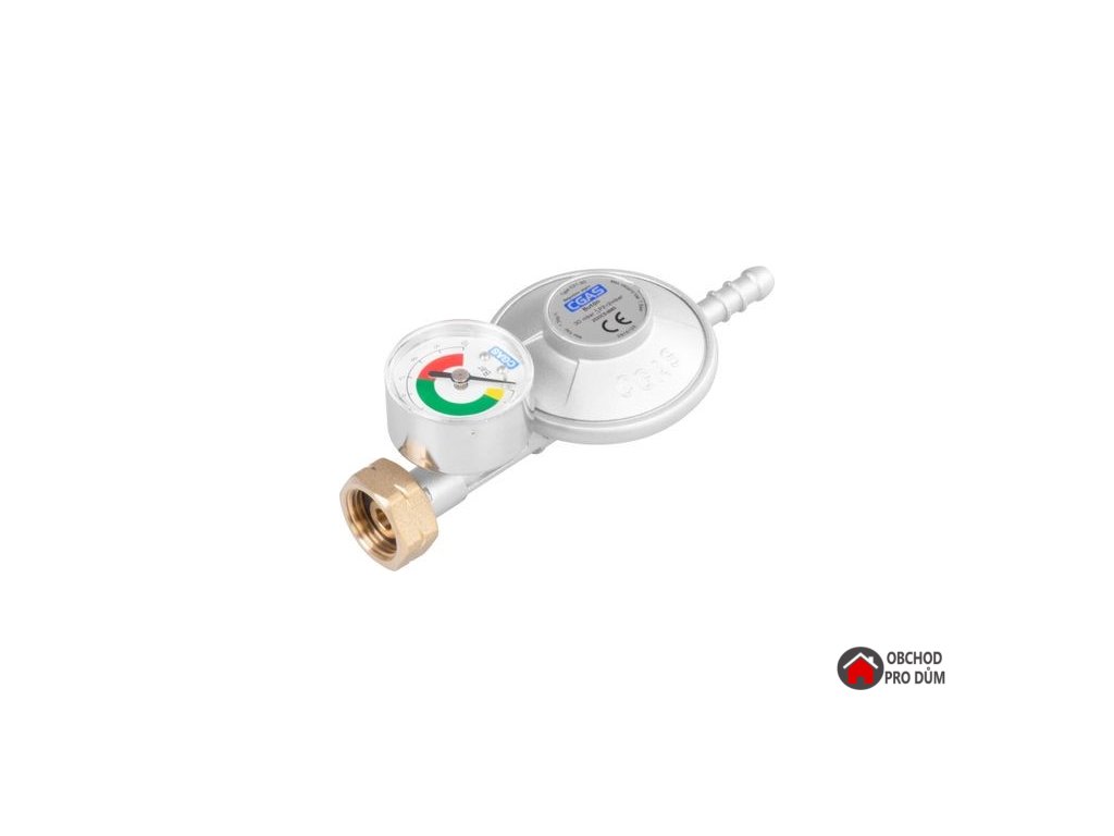 Regulátor plynu CGAS C31-30 s manometrem pro regulaci tlaku plynu 28-30 mbar. Regulátor samočinně snižuje tlak plynu a udržuje jej v nastavené výšce. Je navržen pro používání v zakrytém prostoru, aby nedošlo k ucpání vzduchového otvoru. Vstup: převlečná matice s levým závitem W21,8x1/14". Maximální vstupní tlak: 7,5 bar. Výstup: nátrubek o průměru 8 mm. Průtok: 1,5 kg/h. Norma EN16129.