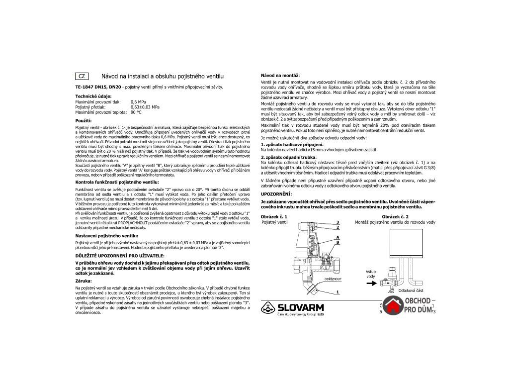 SLOVARM TE-1847 1/2˝ Pojistný ventil k bojleru 417585